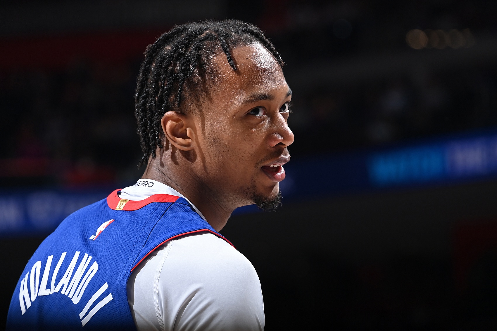 霍兰是去年的五号秀,上赛季他场均能够得到6.4分2.7篮板。