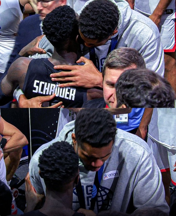 双双入选最佳阵容&皆拿奖牌!字母哥和施罗德拥抱致意