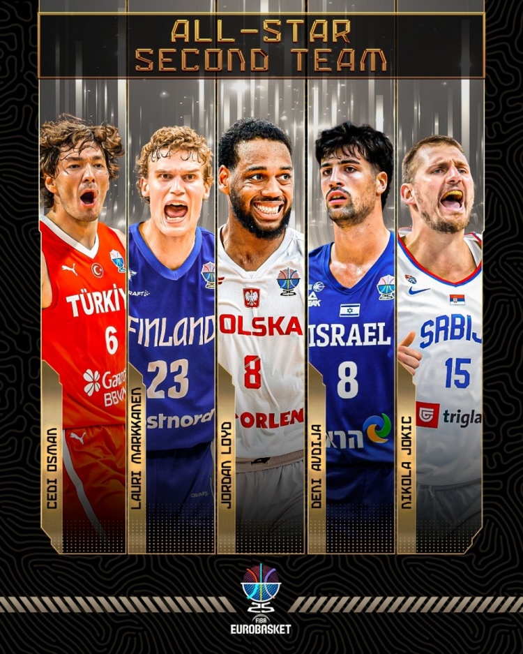 欧锦赛二阵阵容: 约基奇、马尔卡宁、阿夫迪亚、奥斯曼、劳埃德