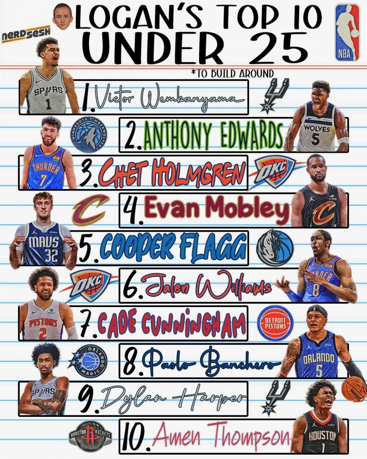 9月1日讯 近日,两名美国记者Logan Camden和Carson Breber分别评选出了自己心中25岁以下的top10球员。