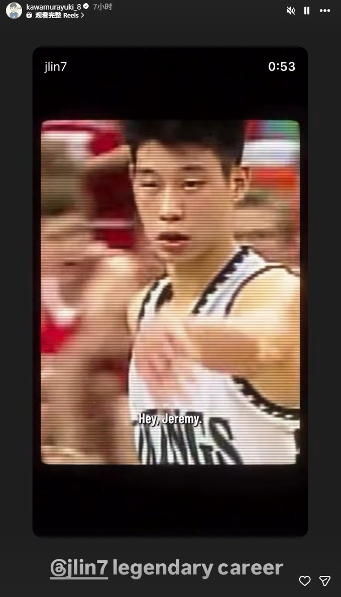 今天,日本后卫河村勇辉更新社媒,向林书豪致敬,他写道:“传奇的职业生涯!” ...