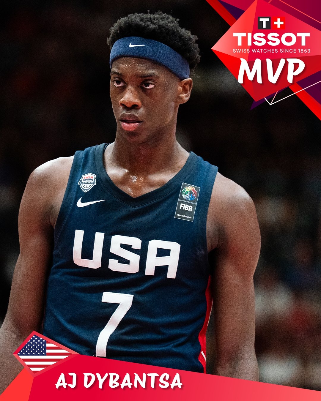 2026年状元大热门、美国队前锋AJ-迪班萨斩获赛会MVP,他本届比赛场均拿到14.3分4.1篮板2.3助攻1.1抢断,其中决赛得到11分6篮板2助攻1抢断(11中4,三分3中0,罚球4中3)。