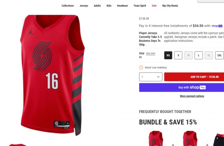7月7日讯 近日据某波特兰华人、抖音博主爆料,杨瀚森球员服开始定价250刀,该抖音博主在线下直营店反映“250”不好听后经店家汇报申请该球衣的价格就改成了238刀。