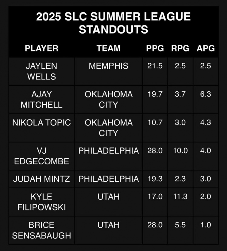 盐湖城夏联公布今年杰出球员名单:埃奇库姆&托皮奇领衔...