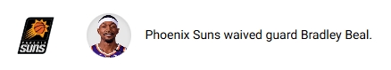 2年1100万去快船🚢NBA官网显示太阳已裁掉比尔 9700万分5年支付