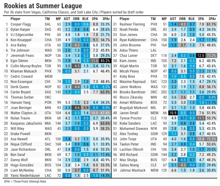 07月23日讯 雅虎开拓者队记Tom Haberstroh今日晒出了今年夏联中的一项数据。