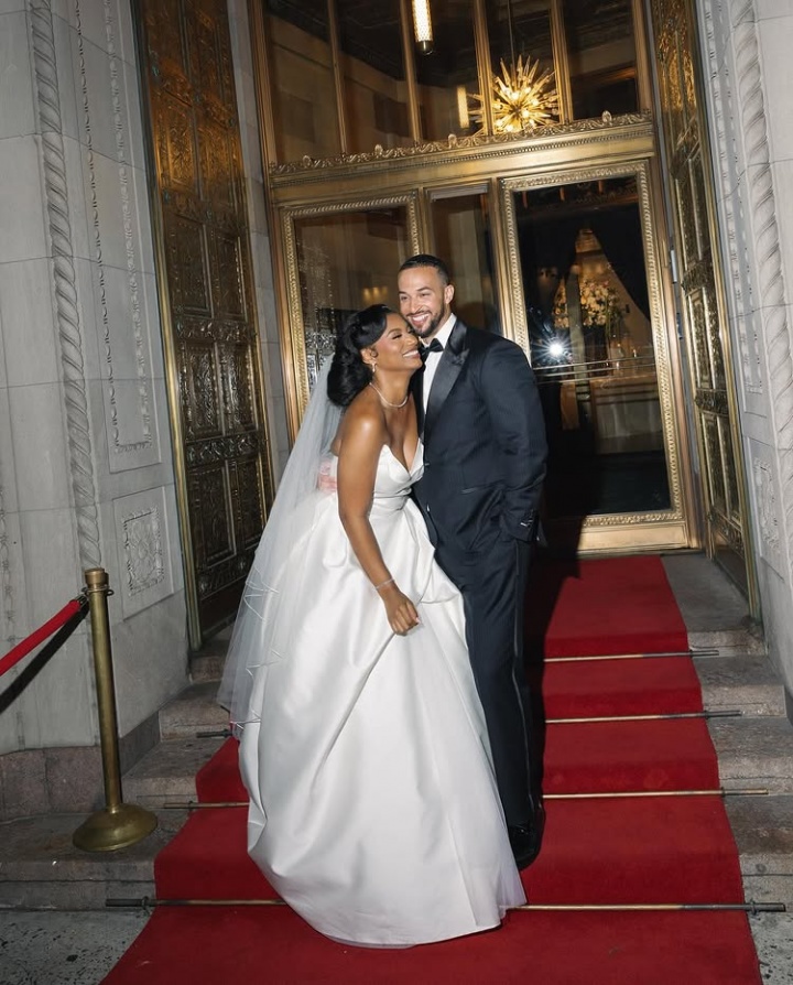 哥俩好😄杜兰特追梦一同参加美女记者婚礼 俩人微笑合影...