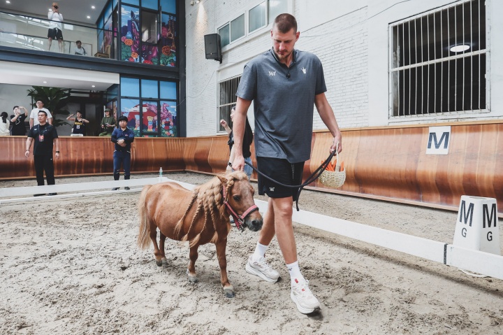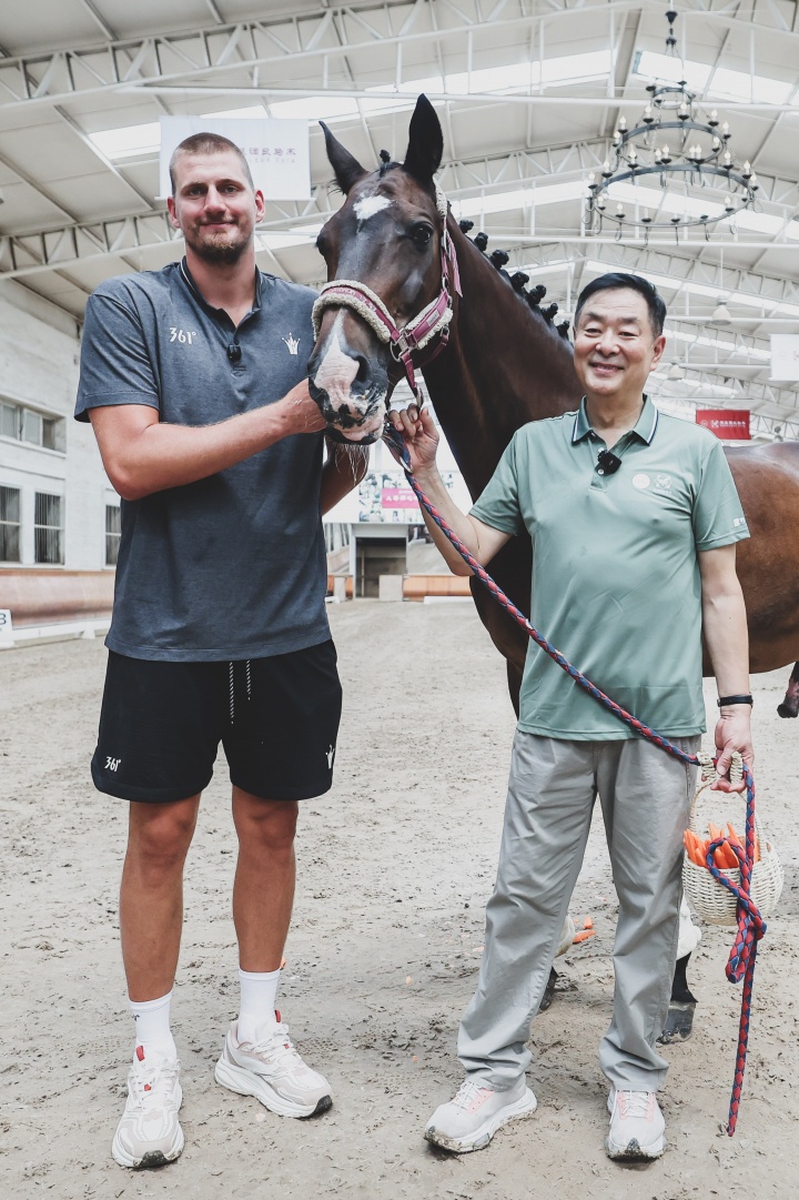 07月25日讯 近日,掘金球星约基奇在中国行期间前往北京天星调良国际马术俱乐部与知名艺术家濮存昕共同参观了马场。
