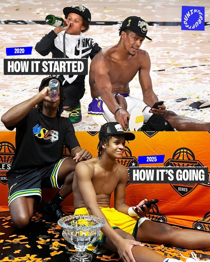 2020湖人夺冠庆典上偷喝酒的隆多儿子夺冠!詹姆斯点赞转发