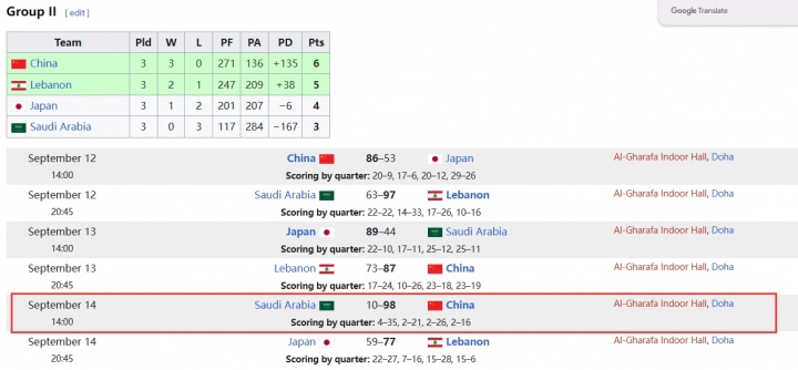 2005年男篮亚锦赛,中国男篮98-10击败了沙特男篮。