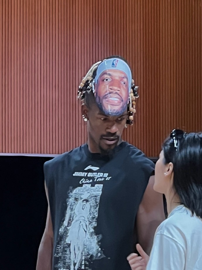 巴特勒出席活动时戴着希尔德面具😂 据说从球迷手中要来的...