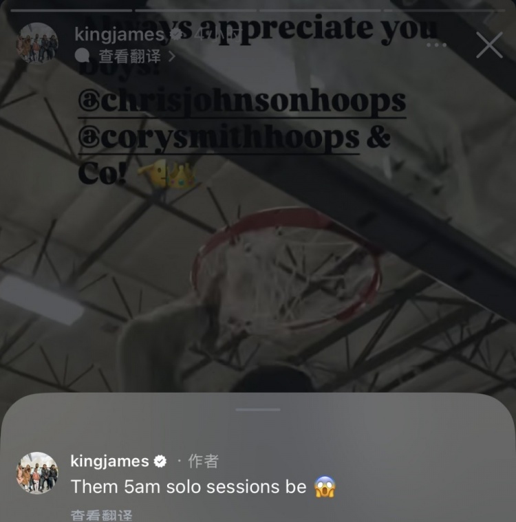 詹姆斯评论道:“那些早上5点的单人训练很😱”