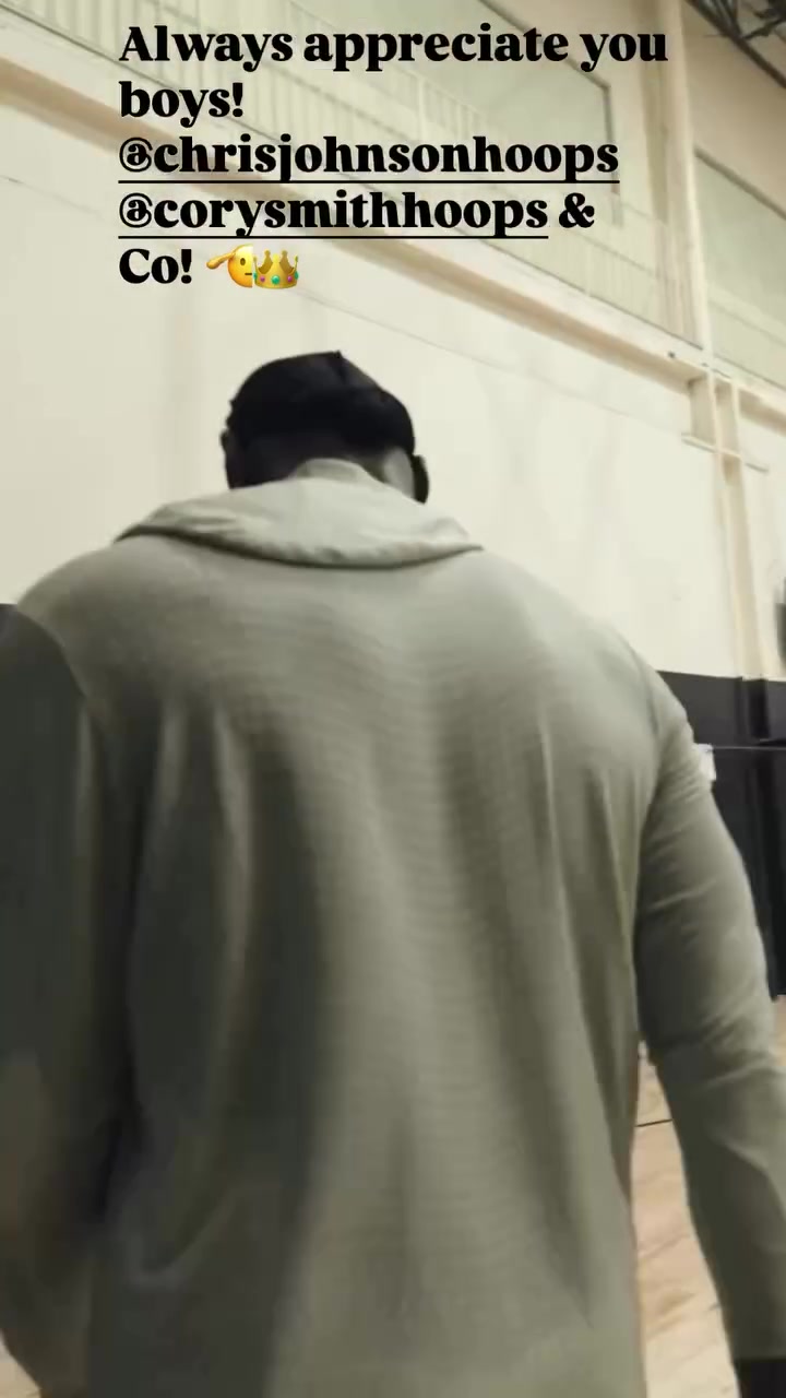 詹姆斯晒出一段他以连续扣篮结束训练的片段,并配文感谢两位协助他完成训练的训练师:“总是很感谢你们!@chrisjohnsonhoops @corysmithhoops&同僚”