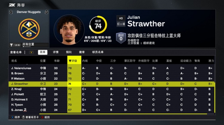 8月30日讯 今日NBA 2K26正式发布,掘金队球员能力值如下:
