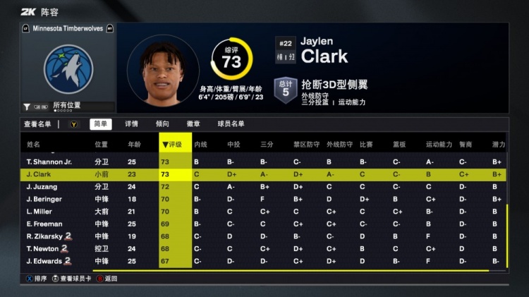 8月30日讯 今日NBA2K26正式发布,森林狼队球员能力值如下: