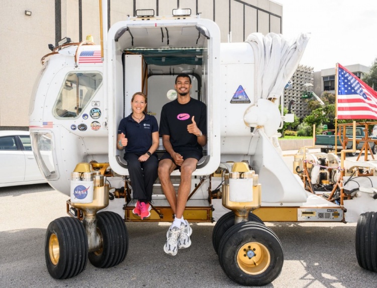 “NBA球星文班亚马造访了美国宇航局约翰逊航天中心,参观了航天器模型实验区、任务控制中心,还体验了一把月球车之旅。无论是在内线统治比赛,还是兴奋地研究宇航员装备,外号“外星人”的文班亚马,都和这些航天科技完美契合。他甚至还像真正的航天贵宾一样,在舱门上签下了自己的名字,满满的星际氛围。”