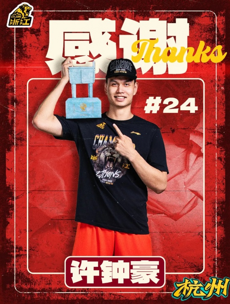 广厦男篮在官方社媒上送别了两位球员:“今夏许钟豪、赖克两名队员合同到期离队,感谢豪哥和小赖在广厦队的付出,祝两位前程似锦!”