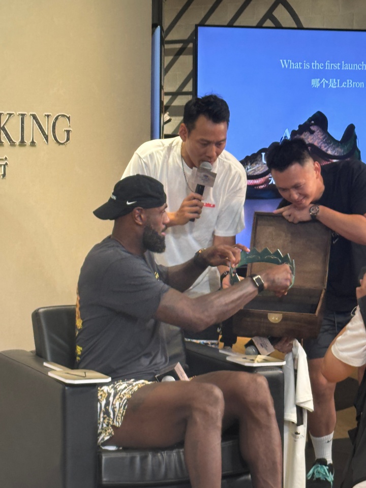 球迷在成都送上亲手制作的王冠👑结果尺寸太大詹姆斯戴不上