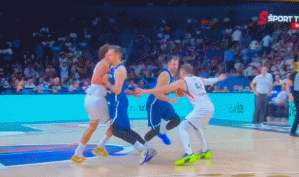 造到东契奇进攻犯规 施罗德躺在地上面露微笑...
