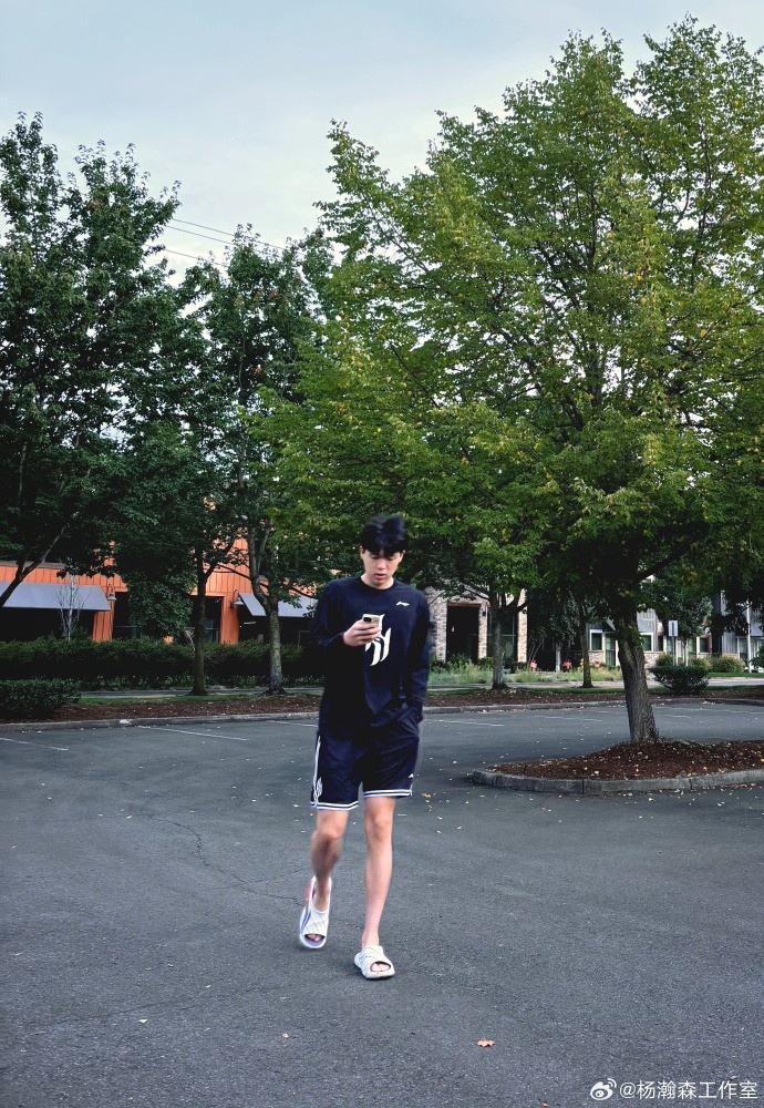 杨瀚森工作室官博晒小杨近照:波特兰的秋🍂...
