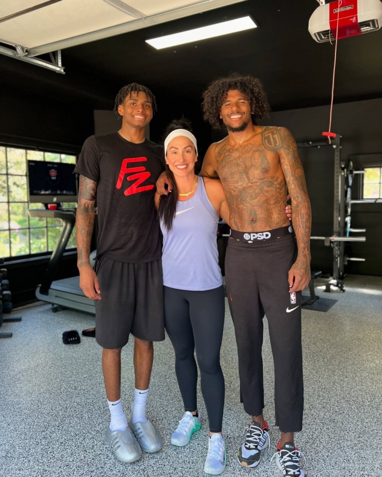 9月12日讯 今日洛杉矶一位健身教练Alexis Lawson晒出太阳球星杰伦-格林高难度训练照。