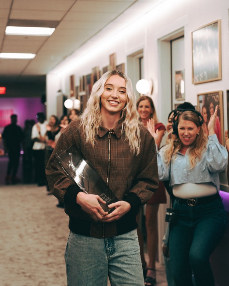 而在公布获奖的同时,佩奇-布克斯也出现在了《The Jennifer Hudson Show》节目中,也在这从WNBA总裁凯茜-恩格波特手中接过了最佳新秀奖杯。