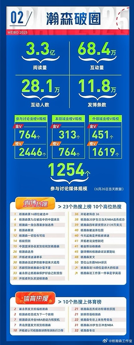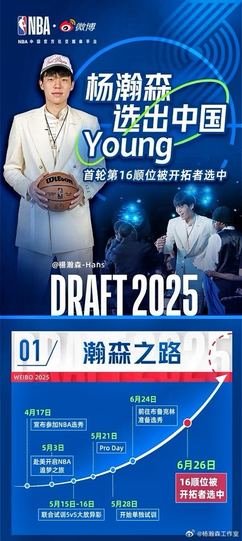 杨瀚森工作室官博在图片旁边写道:“【杨瀚森选秀之路回顾】