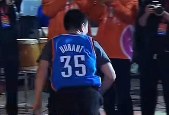 严父型球迷!徐静雨场上怒换杜兰特雷霆球衣 追梦一旁鼓掌大笑...