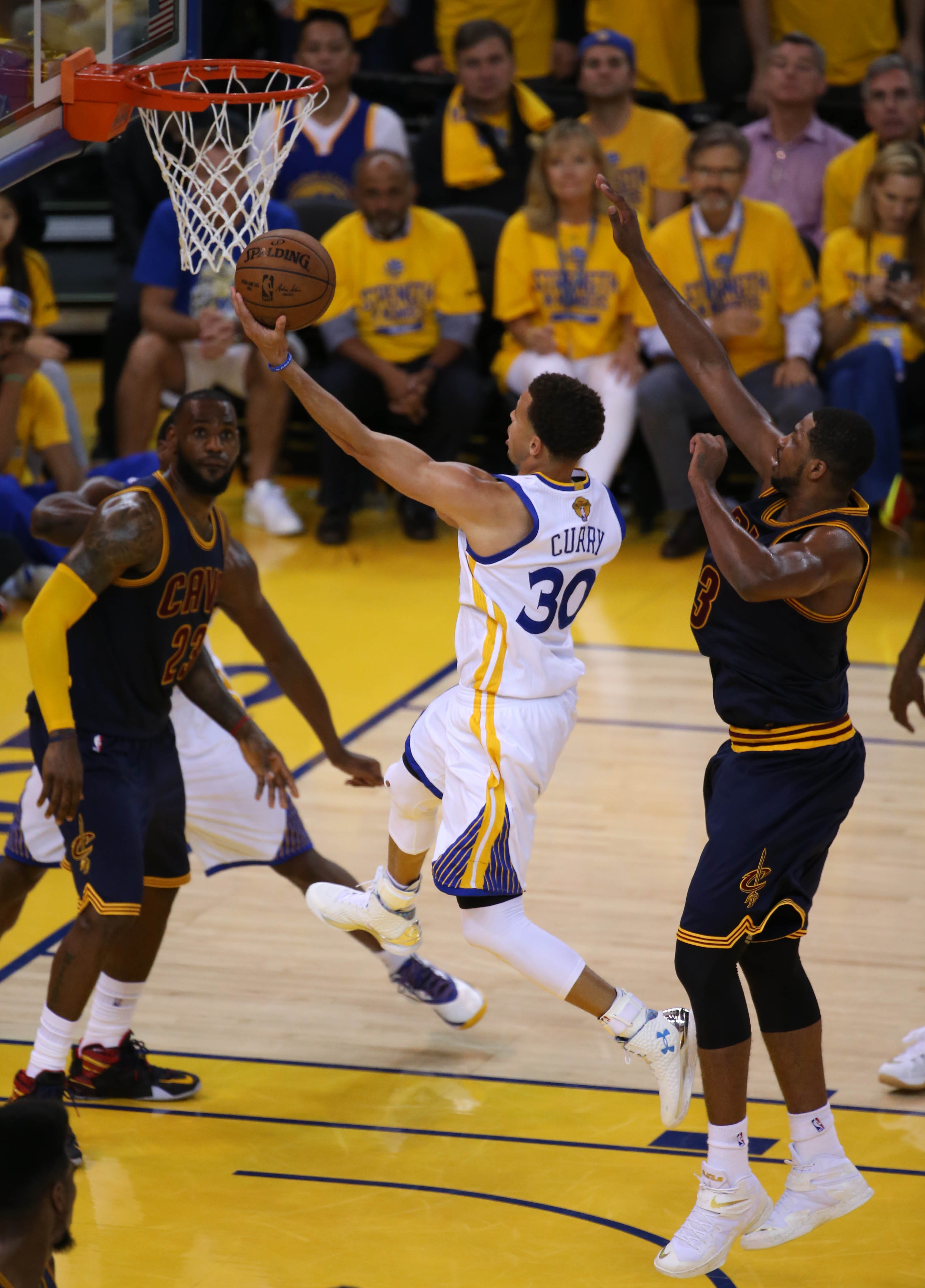 在总决赛的总比分战平2-2之际,库里率领勇士在主场拿下了系列赛的天王山之战;尽管詹姆斯得到了全场最高的40分,外加14篮板11助攻的大号三双,但库里在末节关键时刻站了出来,独得17分,彻底扑灭了骑士反扑的势头。