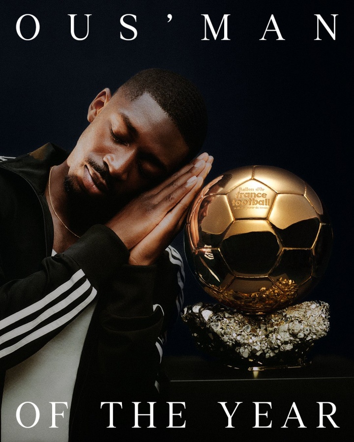 在跟赞助商阿迪达斯的宣传像中,登贝莱再次做出了库里的“晚安”庆祝姿势;