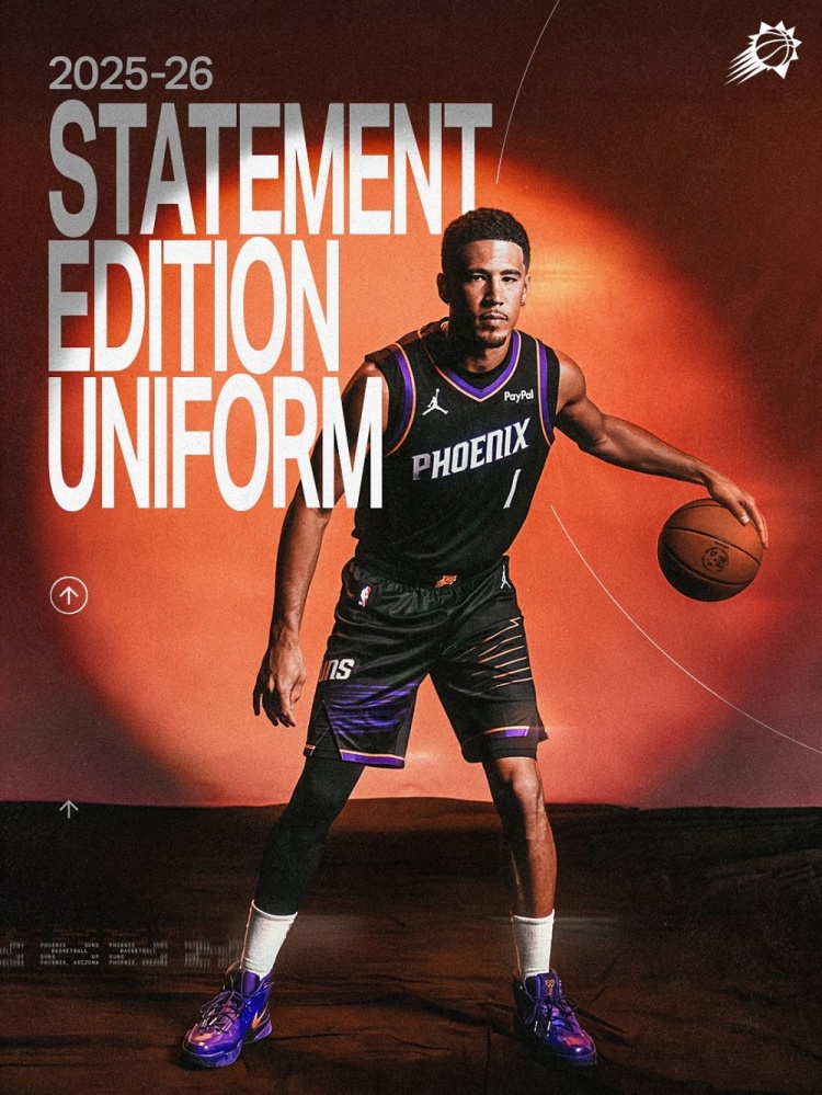 9月27日讯 太阳队刚刚发布了球队新赛季的宣告版(Statement Edition)球衣,并有布克上身拍摄了全新定妆照。