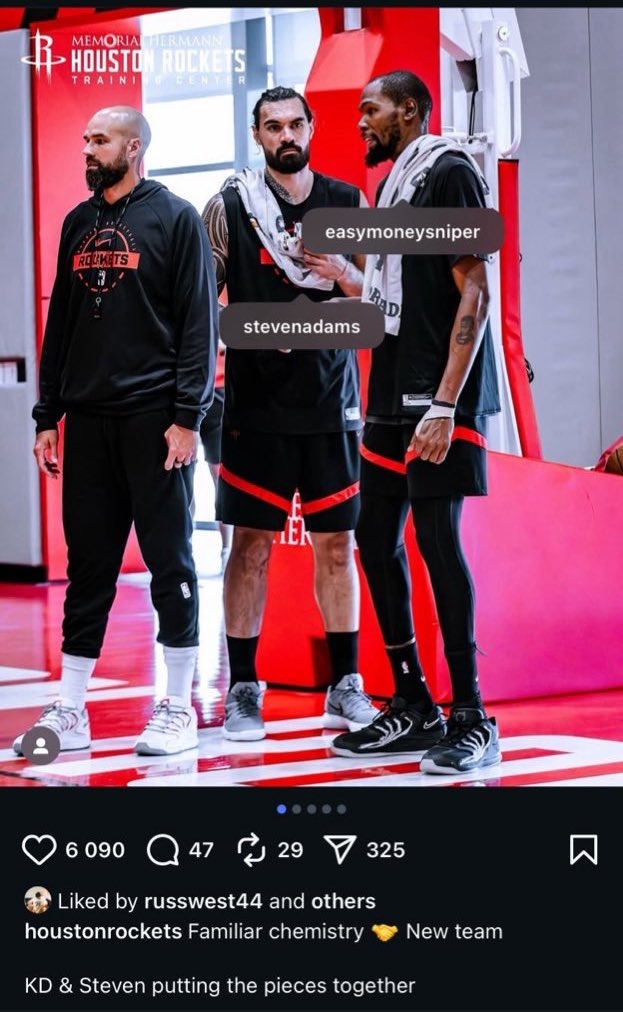 重回火箭?火箭官方晒亚当斯杜兰特合照 威少点赞!...