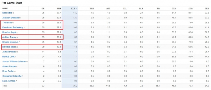 俄勒冈大学上赛季出场时间前5的后卫里,有4人今夏离队。球队官网目前的名单上共有16人(不包括林葳),有5人担任后卫,3人上赛季效力于俄勒冈。可以确定一个首发位置的是Jackson Shelstad,他大二赛季首发了全部35场比赛,场均13.7分2.9篮板2.7助攻,入选大十联盟三阵。而Drew Carter和Jamari Phillips过去是边缘球员,前者两个赛季共出战13场比赛场均2.2分钟;后者大一赛季共出战14场比赛场均5.4分钟。