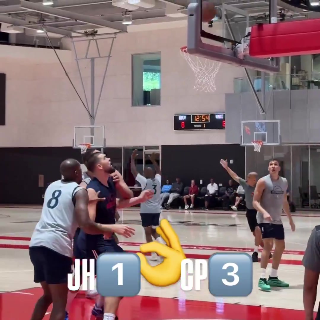 互不相让!哈登面对保罗飚进三分 后者底角空位回敬一球...