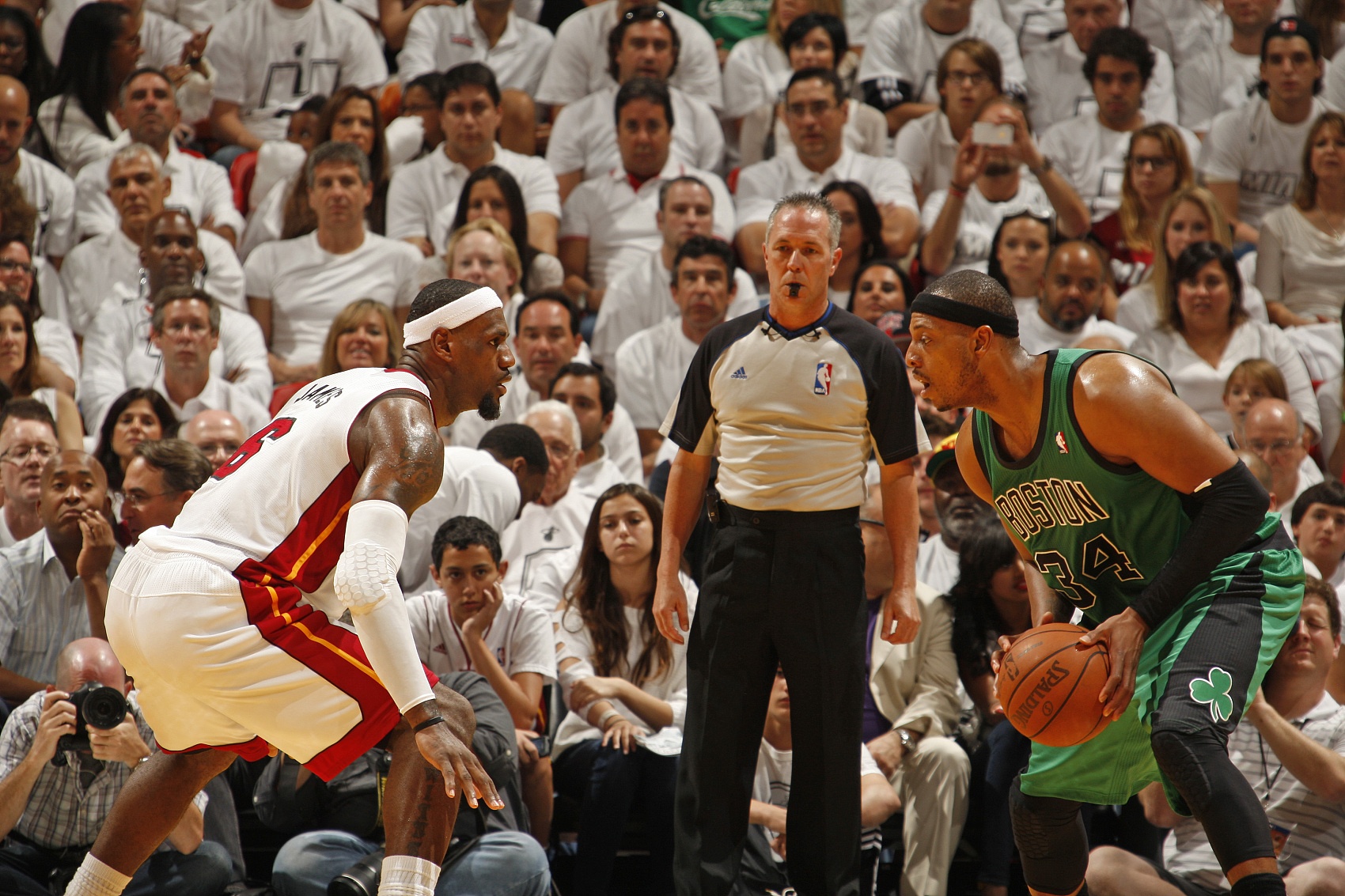 皮尔斯说道:“如果我们(我和勒布朗)是同龄人,我不相信他能够拿到四个总冠军。(如果是这样的话)他不会得到在迈阿密的那两个总冠军。如果我们同龄,我可以抵消他的优势。那将足够好。他能够在一场比赛中得到40分,我在对面也可以。那时候我年纪大了,跑了很多英里,我很难跟上他了。”