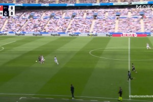 第30分钟,皇马右侧角球机会,球罚向禁区,米利唐甩头攻门被雷米罗托出横梁。↓