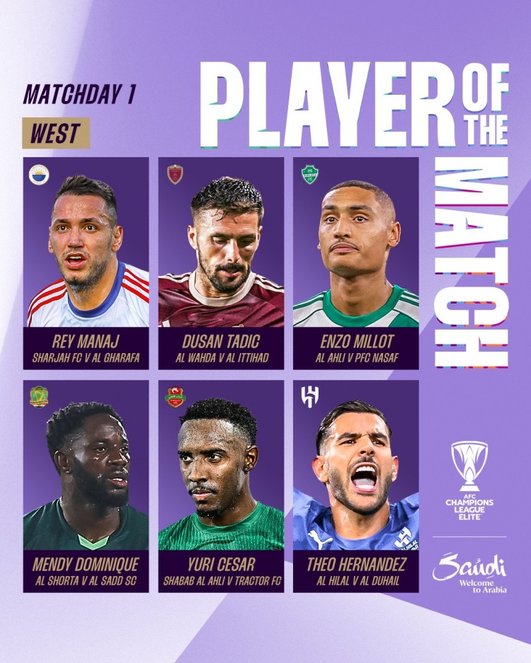 亚冠精英联赛小组赛首轮西亚区最佳球员候选