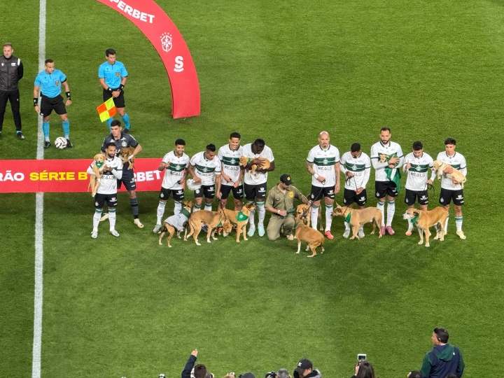据巴西环球体育报道,为庆祝“金色九月”这一致力于动物权利的活动,科里蒂巴与当地爱心组织合作,每名球员在该组织救助的11只金色小狗的陪伴下踏上球场,这11只小狗都可供领养。
