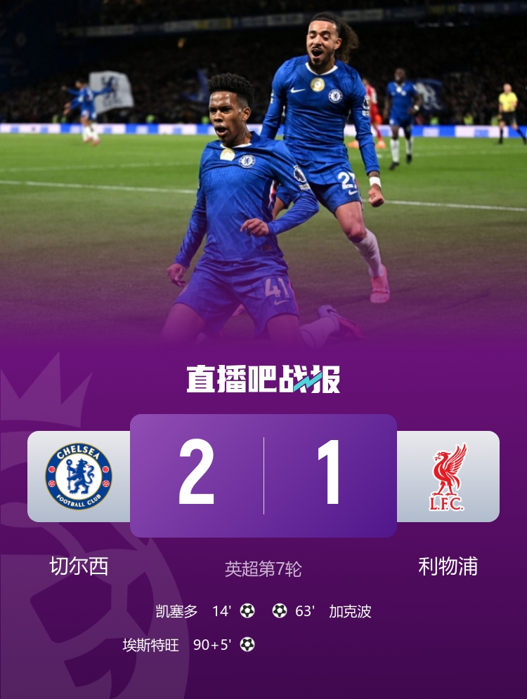 切尔西2-1绝杀送利物浦三连败 埃斯特旺补时绝杀凯塞多世界波