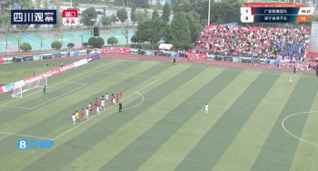 比赛伤停补时阶段,比分落后的遂宁队获得中场附近任意球,球队门将刘宇航也冲进禁区内参与争顶。随后任意球开出,刘宇航高高跃起头球破门,遂宁队1-1绝平广安队!