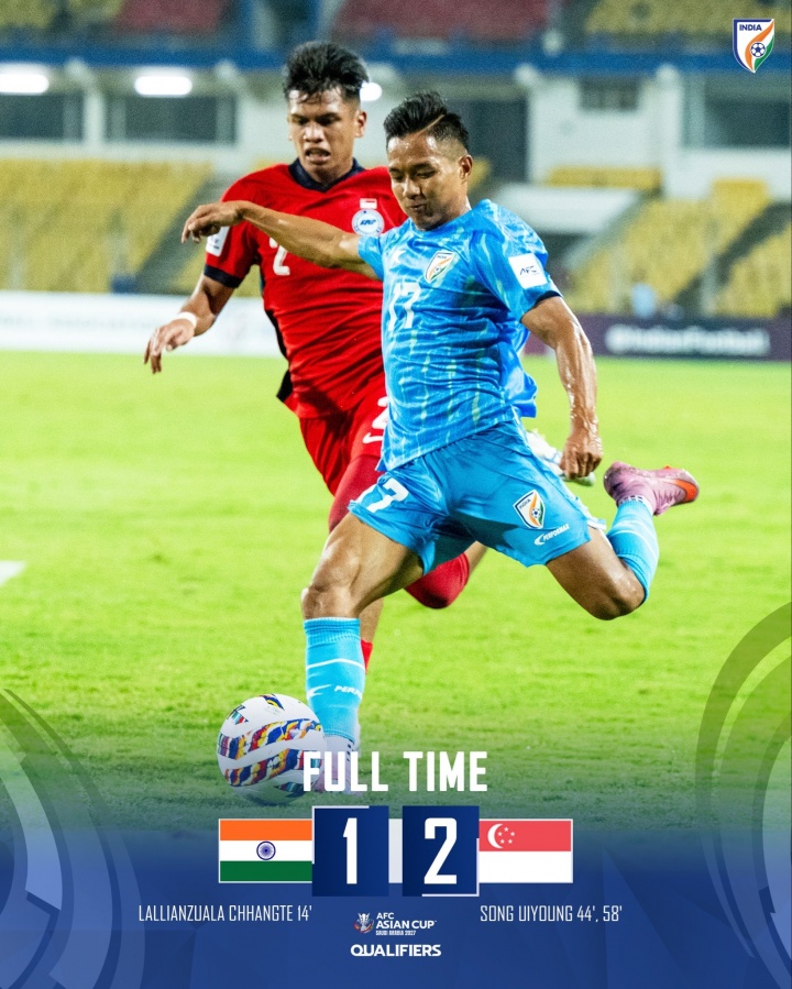 无缘亚洲杯正赛!印度1-2遭新加坡逆转,4场比赛2平2负难求一胜