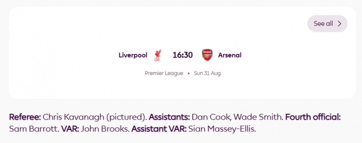 内部处罚!官方:利物浦vs阿森纳裁判调整,VAR因昨日误判被更换